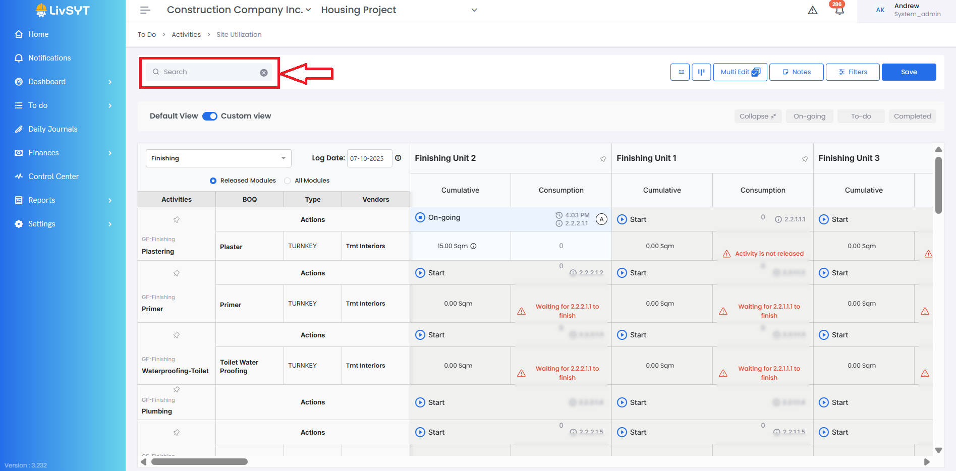 Purpose: Learn how to search for an activity in the Tabular View in livSYT.