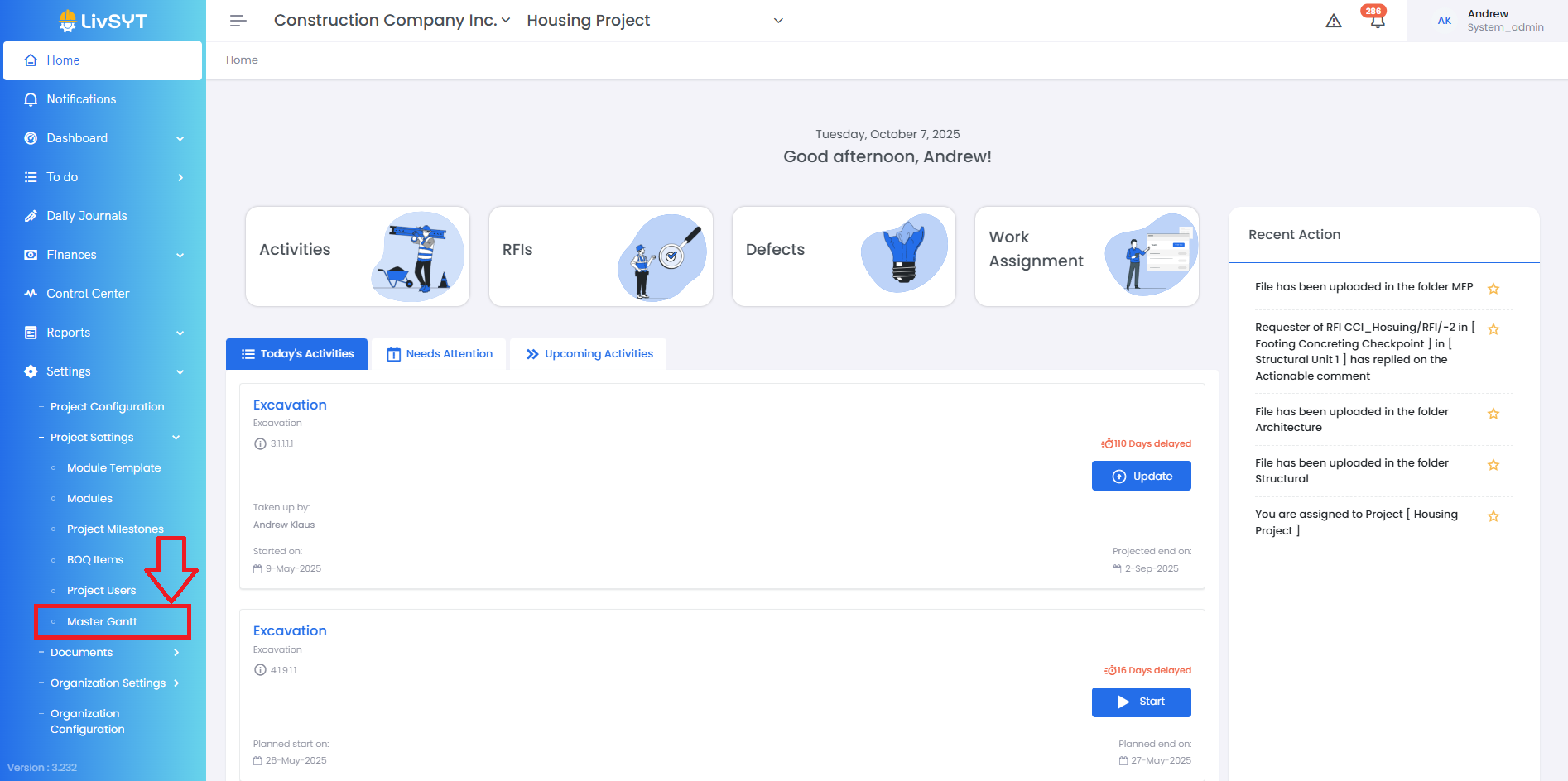 2. Open Master Gantt