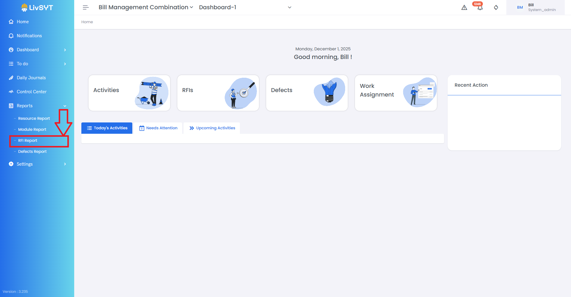 - Choose RFI Report from the available options.